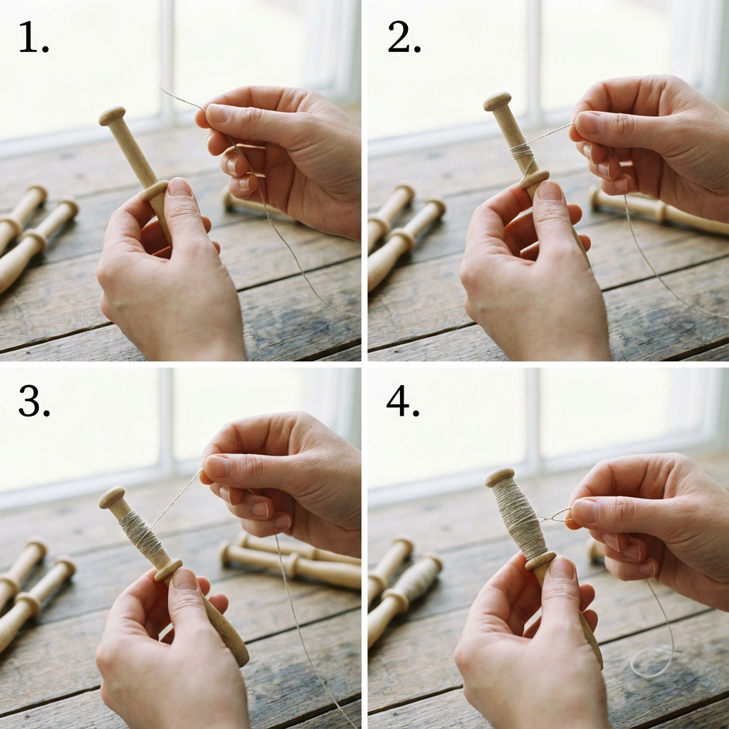 Hero Image: “Close-up of hands making bobbin lace on a flat pillow, multiple wooden bobbins with colorful spangles, soft natural daylight, shallow depth of field, craft photography style”