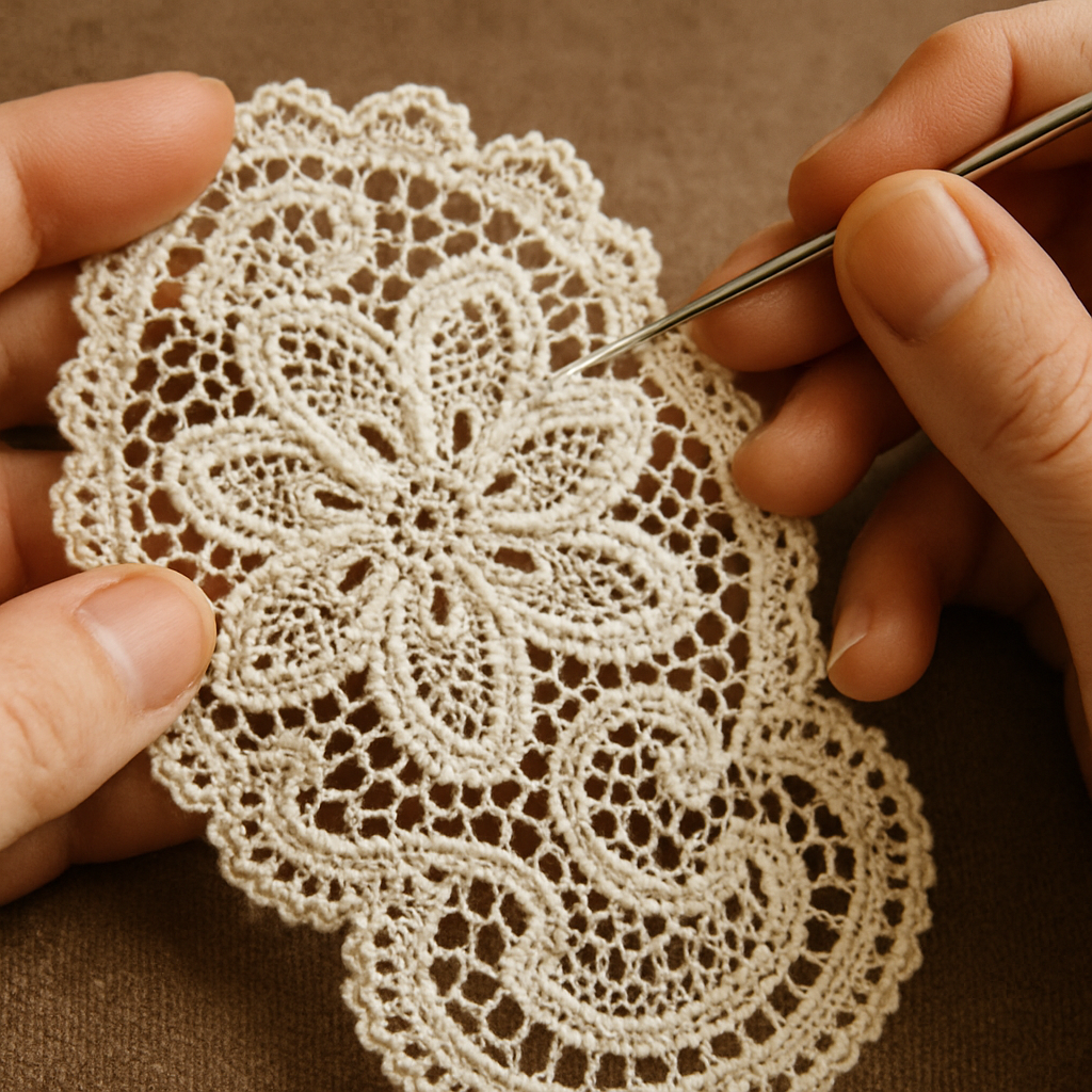 A skilled lacemaker can produce about one square inch of complex bobbin lace per hour. A small doily might take 40-60 hours, while an elaborate collar could require 200+ hours of work.
