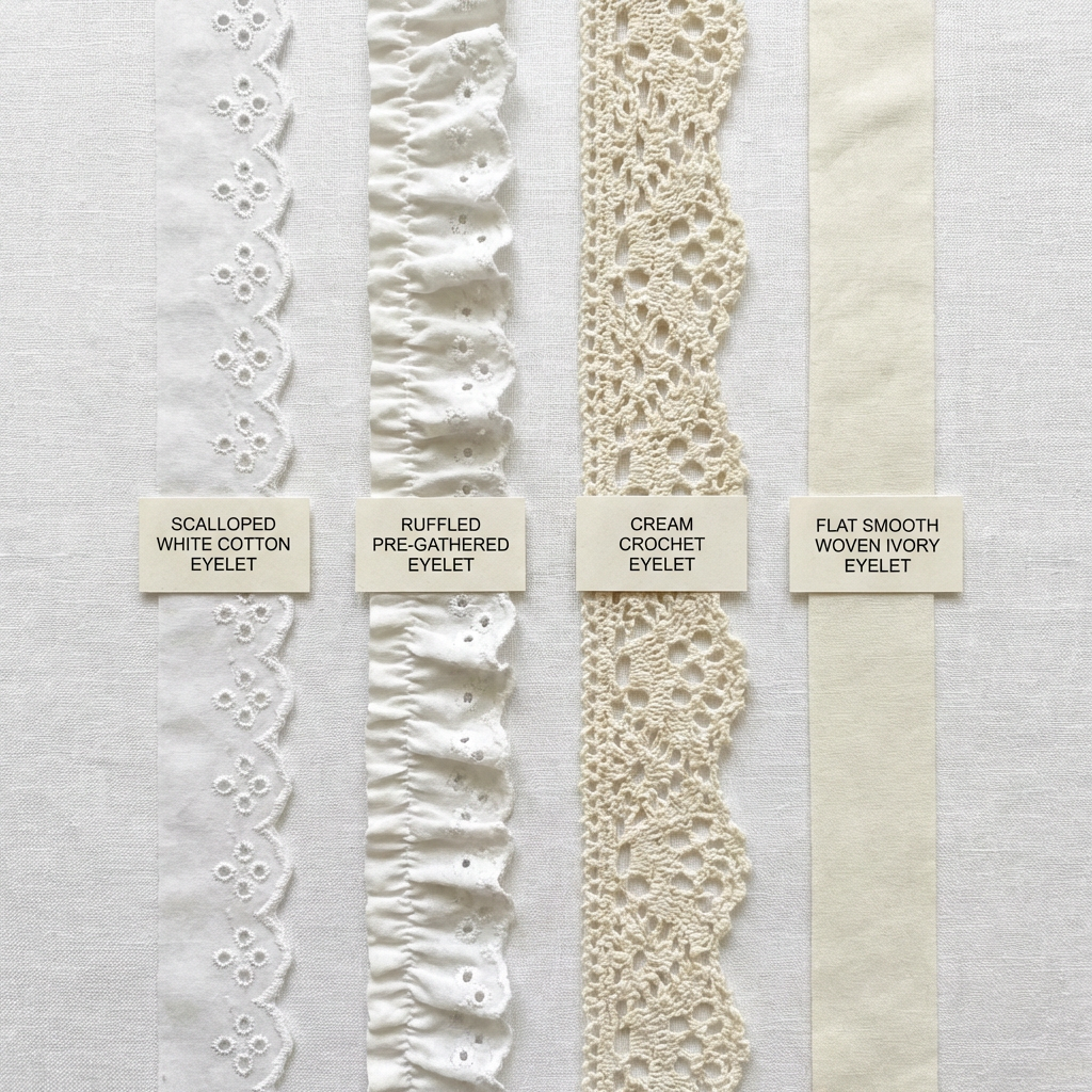 Not all eyelet trim is the same. Picking the right type for your project makes a significant difference in how the finished piece looks and how easy it is to work with.