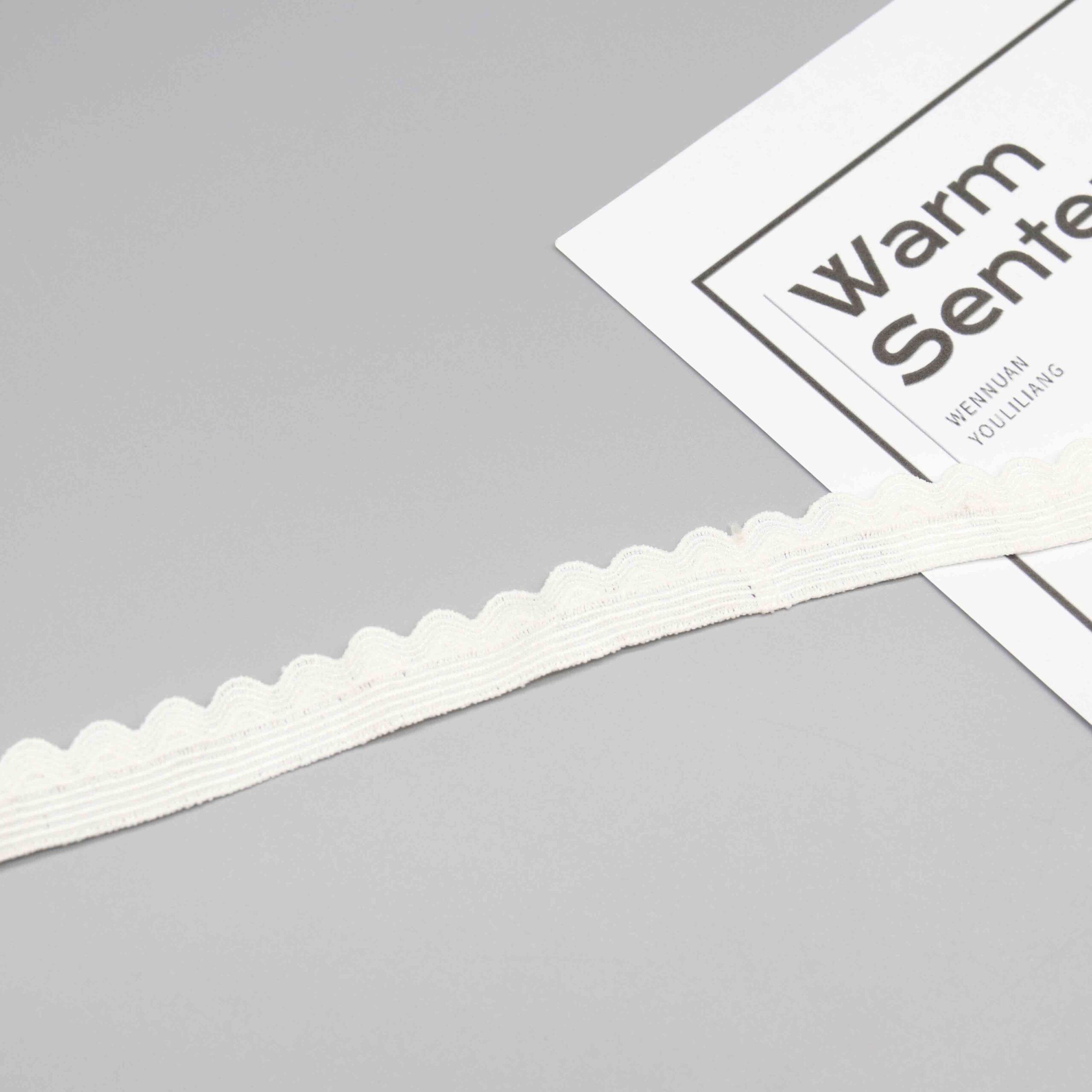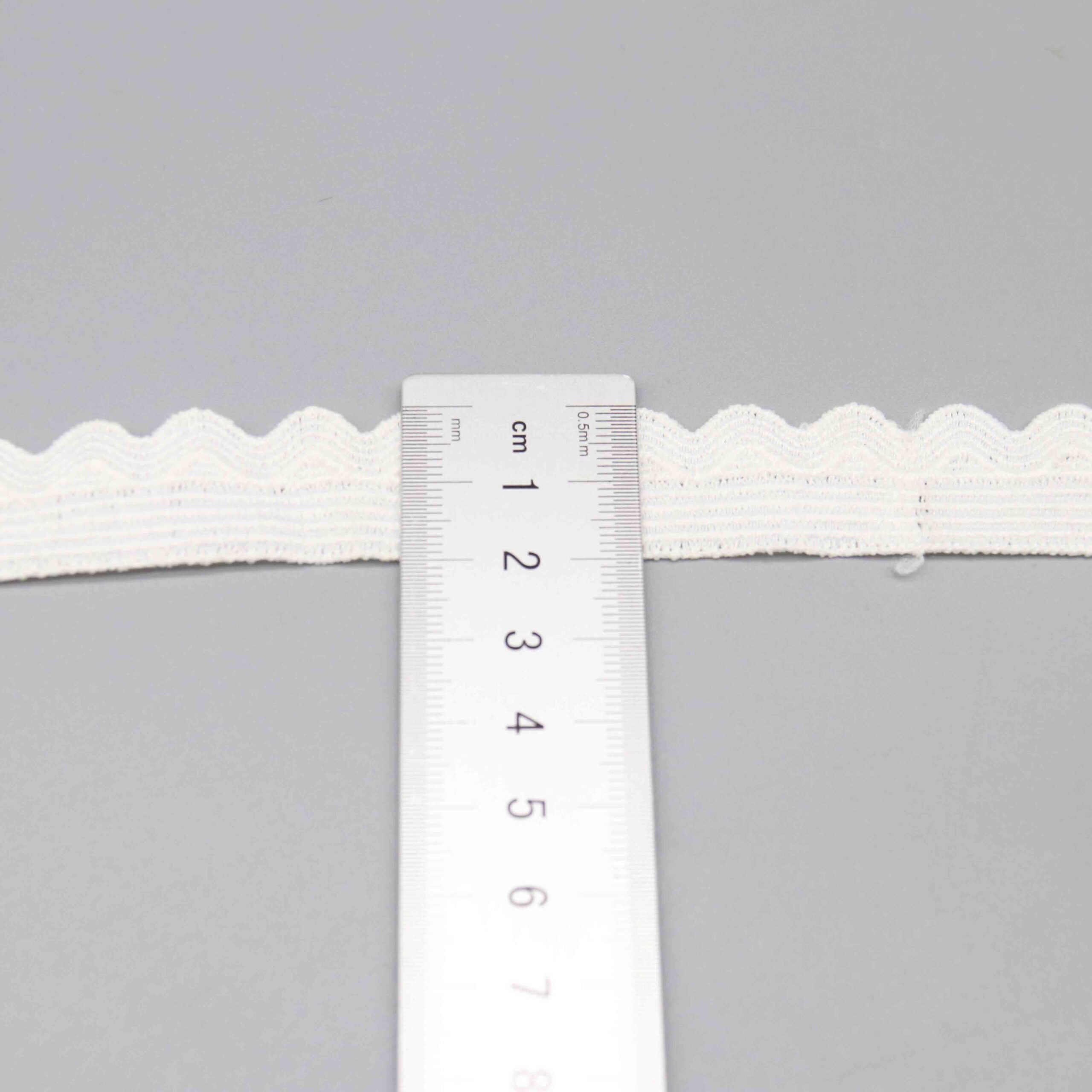 Characteristics: Practical 2cm width suitable for standard trim applications. Smooth, lightweight construction with subtle sheen and soft drape. Uniform scallop size and spacing throughout — essential for production consistency. The simple design allows fast, efficient sewing with standard equipment.