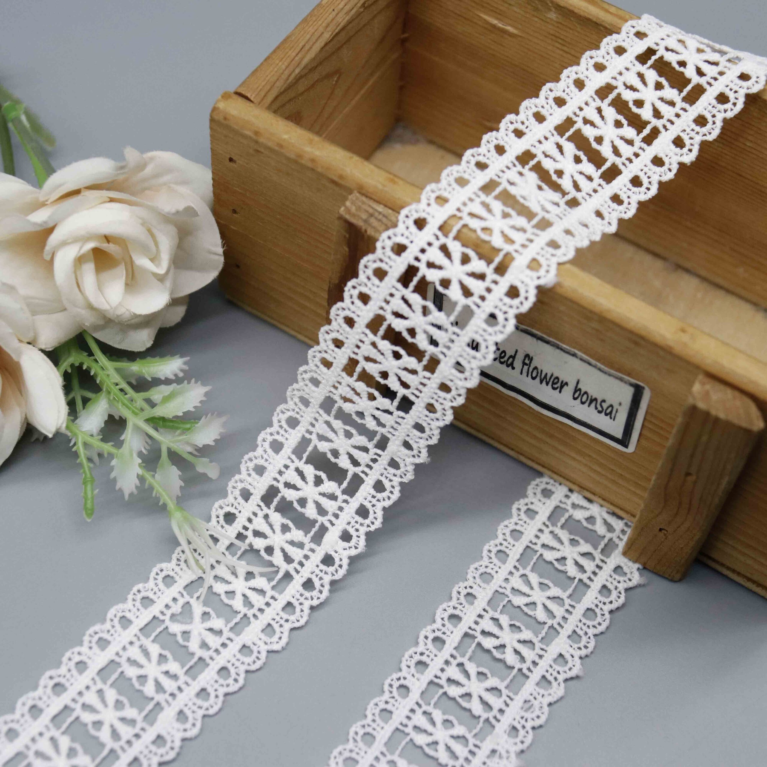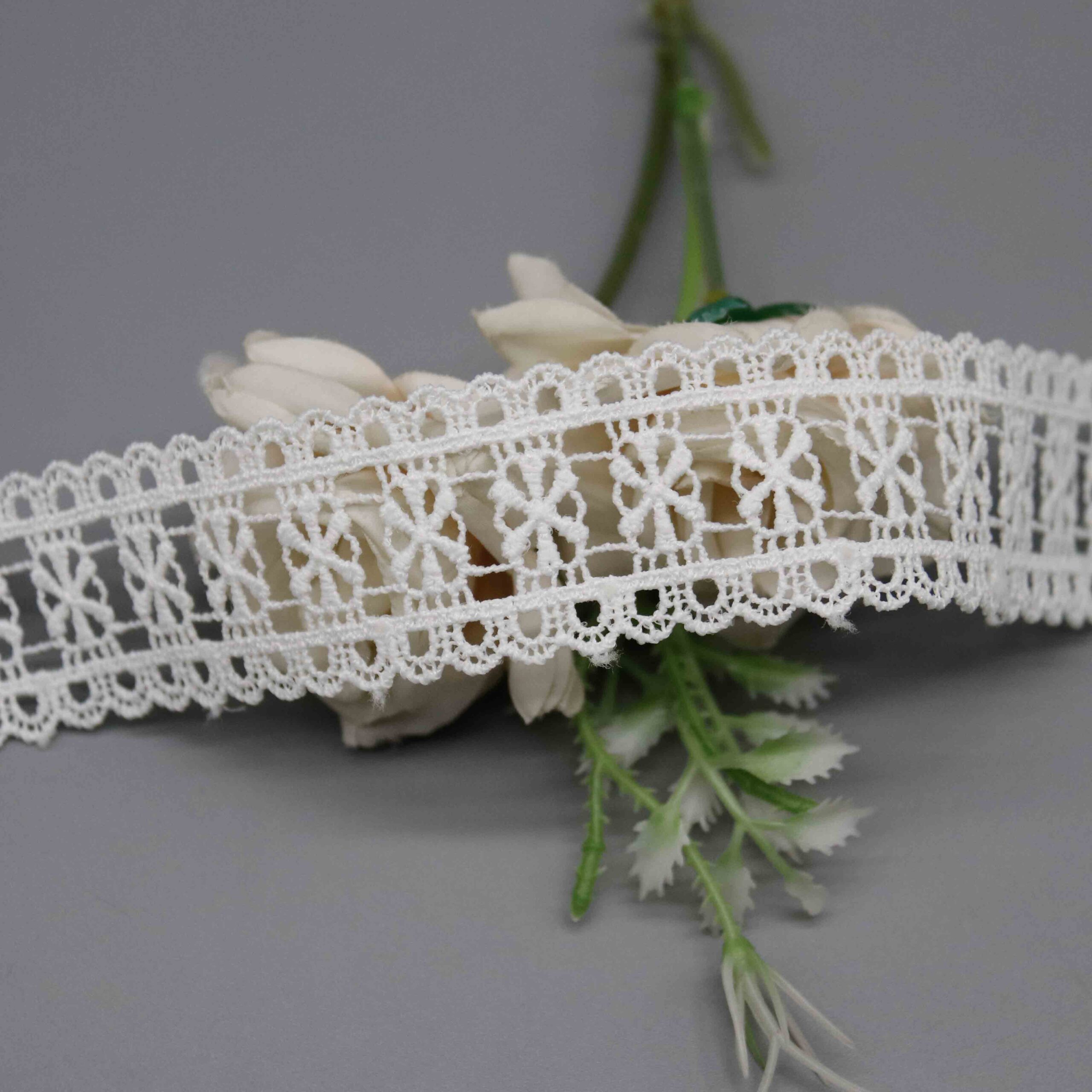 This Daisy Floral Grid Water Soluble Lace Trim presents a romantic cottage-inspired design, manufactured from premium 100% polyester milk silk fiber. The repeating daisy motifs are connected by fine lattice bars, while the double scalloped edges provide a beautifully finished look on both sides. The lightweight, breathable construction offers exceptional softness against skin.