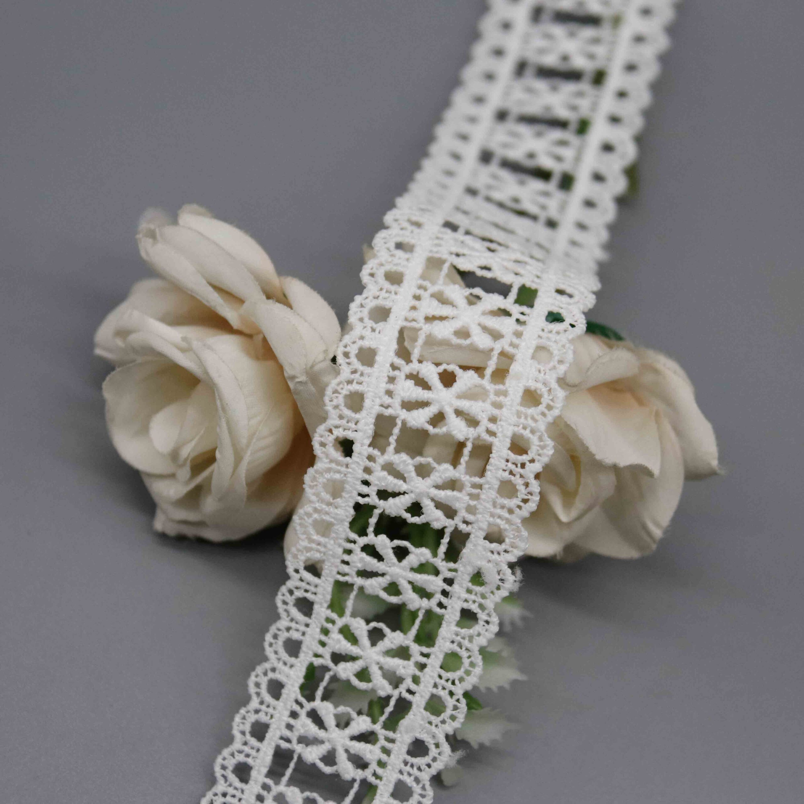 This trim appeals strongly to end consumers seeking feminine, vintage-inspired embellishments for intimate apparel, children’s wear, and craft projects. The milk silk polyester delivers a luxuriously soft hand-feel while ensuring colorfastness, durability through washing, and hypoallergenic properties—key selling points for baby and lingerie applications.
