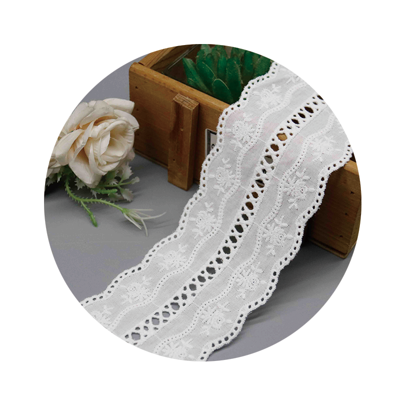 Our embroidery production ensures precise eyelet punching and consistent floral placement across large production runs. MOQ of 2000 yards supports bulk manufacturing requirements with competitive volume pricing. Custom dyeing services available for seasonal color variations including soft pastels and classic white.