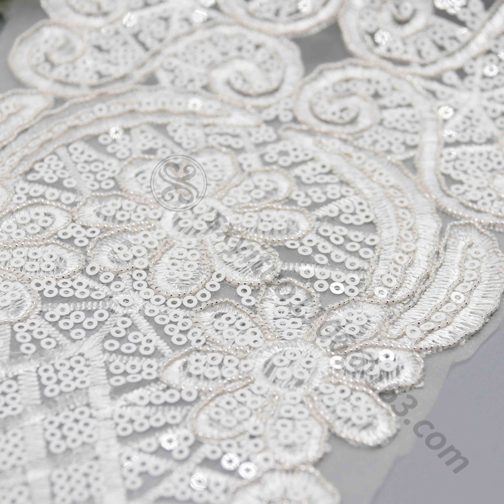 Commercial Benefits: Consistent sequin density and pattern placement across production runs — essential for bridal manufacturers requiring exact matching on multi-panel garments. No minimum order on standard white stock. Ready inventory supports urgent wedding order timelines. Custom colorways available with flexible MOQs for designers developing signature palettes.