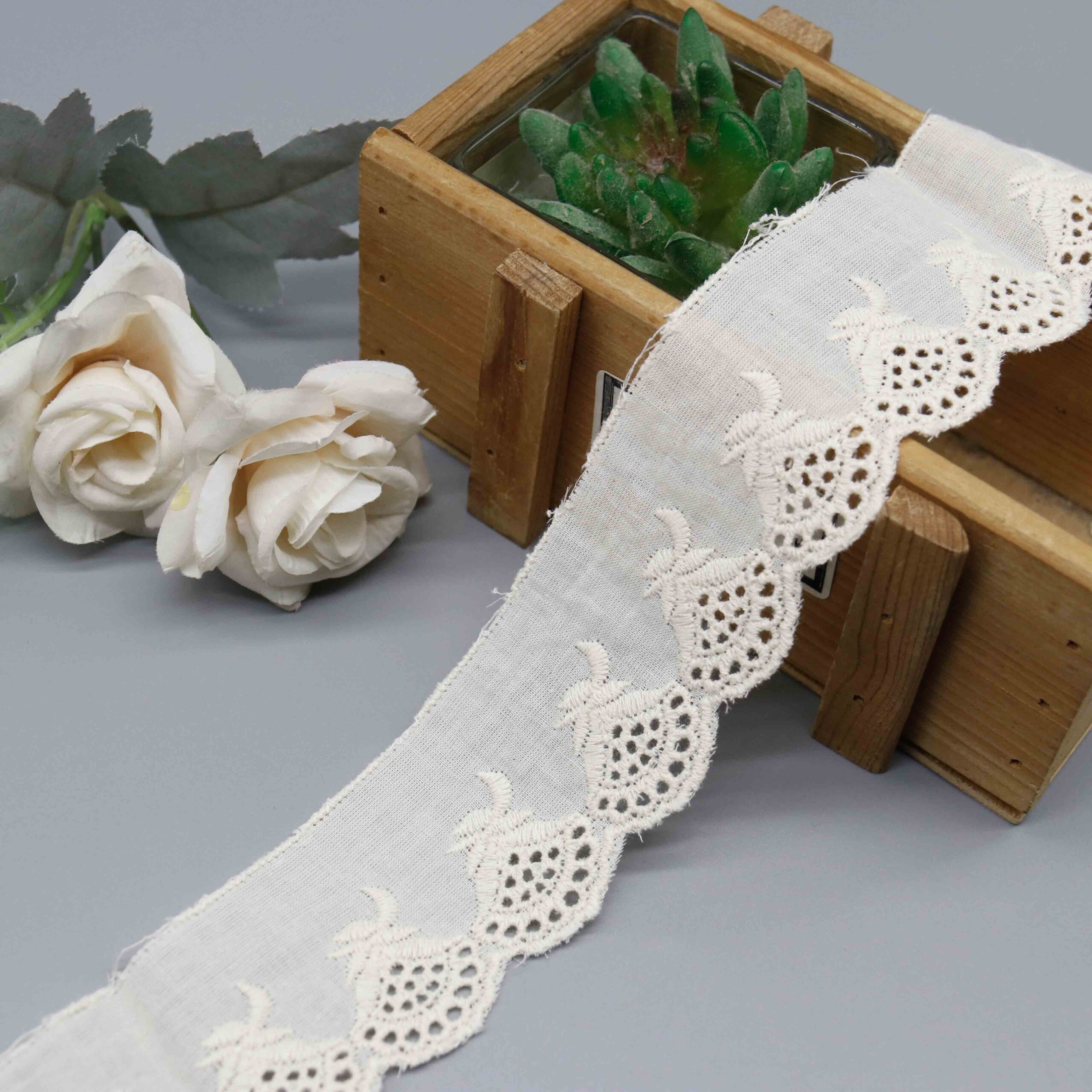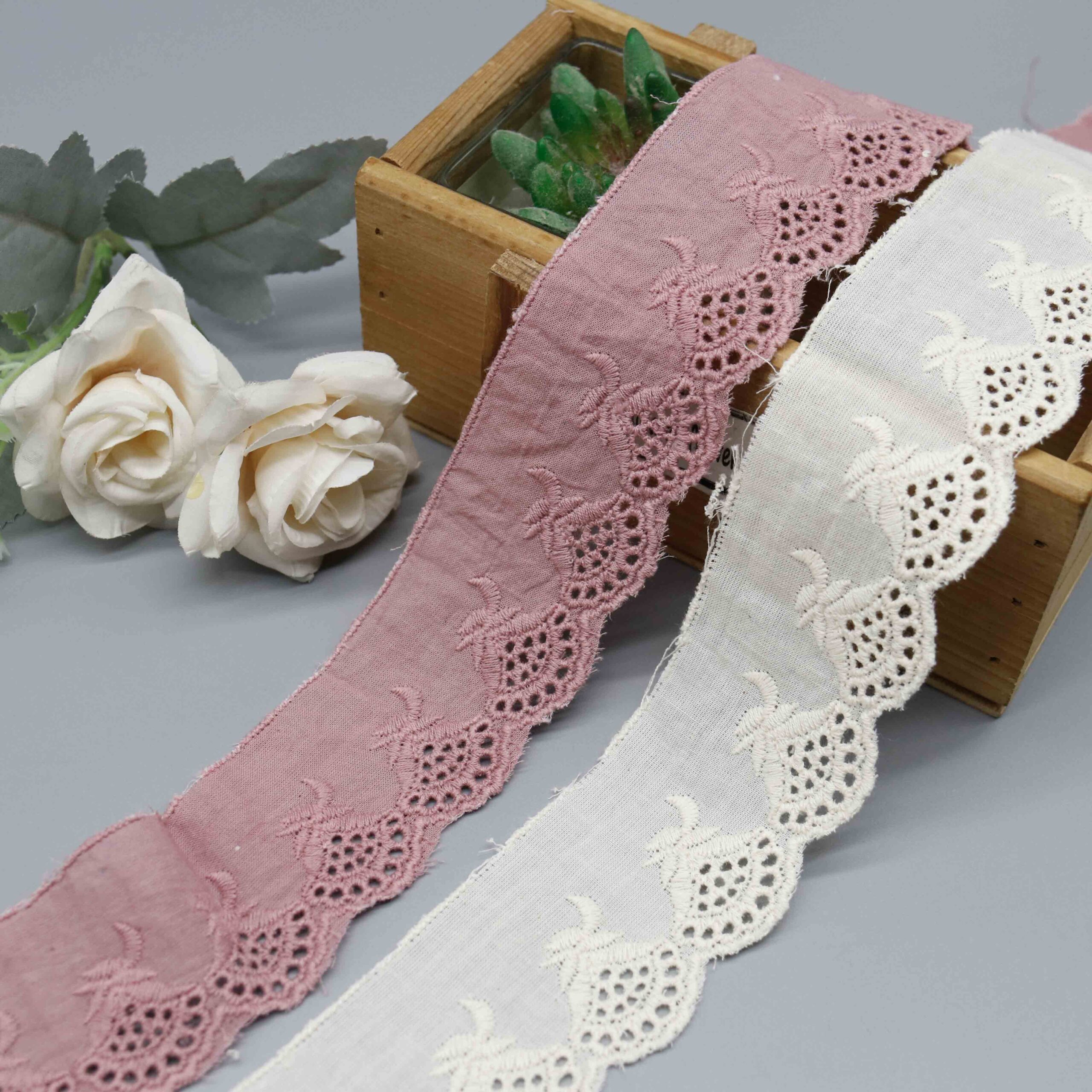 Our embroidery production maintains precise eyelet punching and consistent scallop formation across dye lots and production runs. No minimum order requirements support flexible purchasing for both sampling and bulk needs, with ready stock in both colors for immediate dispatch. Additional custom colors available upon request.