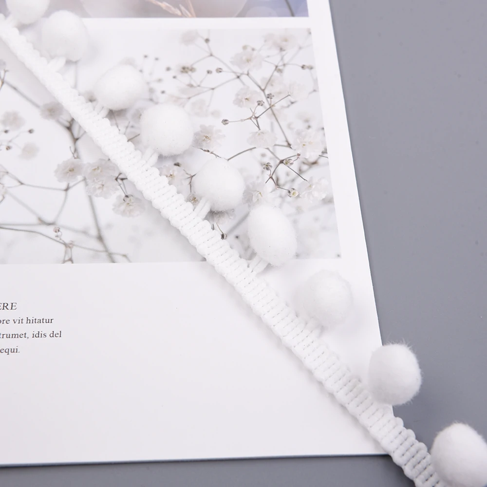 Pompom trims remain a perennial favorite for children’s clothing, baby accessories, and bohemian home décor. This product appeals to end consumers seeking playful, tactile embellishments that add dimension and personality to garments and soft furnishings. The pure white colorway offers maximum versatility, serving as both a standalone accent and a base for custom dyeing.